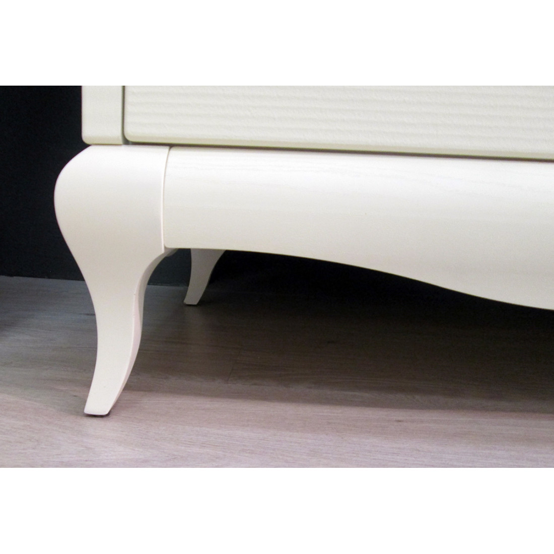 - Цвет фасада - «крем крашеное дерево» – криволинейные фасады МДФ-38мм, боковые стенки МДФ-28мм, крышка (сборная) МДФ-54мм Kronospan Szczecinek (Польша) + ПВХ Alfaterm (Италия).