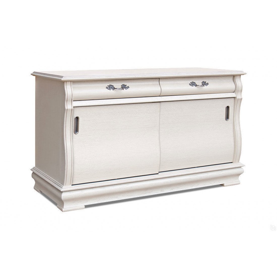 Тумба для гостиной из коллекции мебели "Оскар" это классическая и многофункциональная модель. Тумба оснащена двумя раздвижными дверцами и выдвижными ящиками с ажурной фурнитурой. Слегка изогнутые бока фасада придают силуэту модели изящность и оригинальность. Тумба выполнена с использованием массива и шпона дуба и окрашена в оттенок "Белая эмаль с патиной".